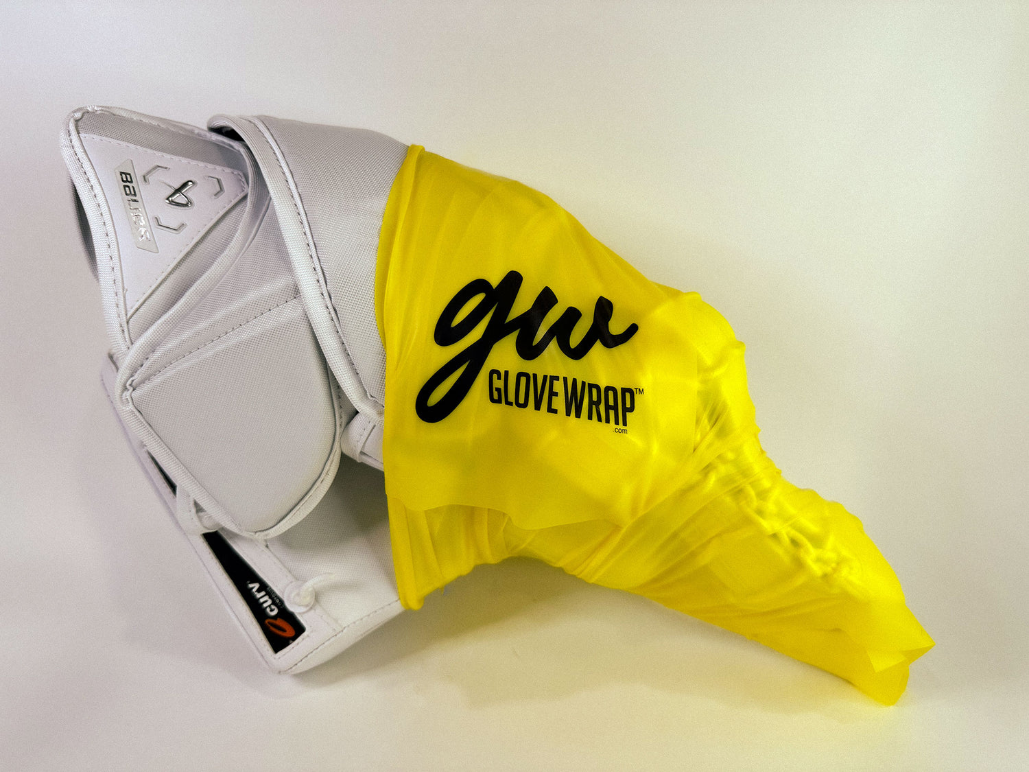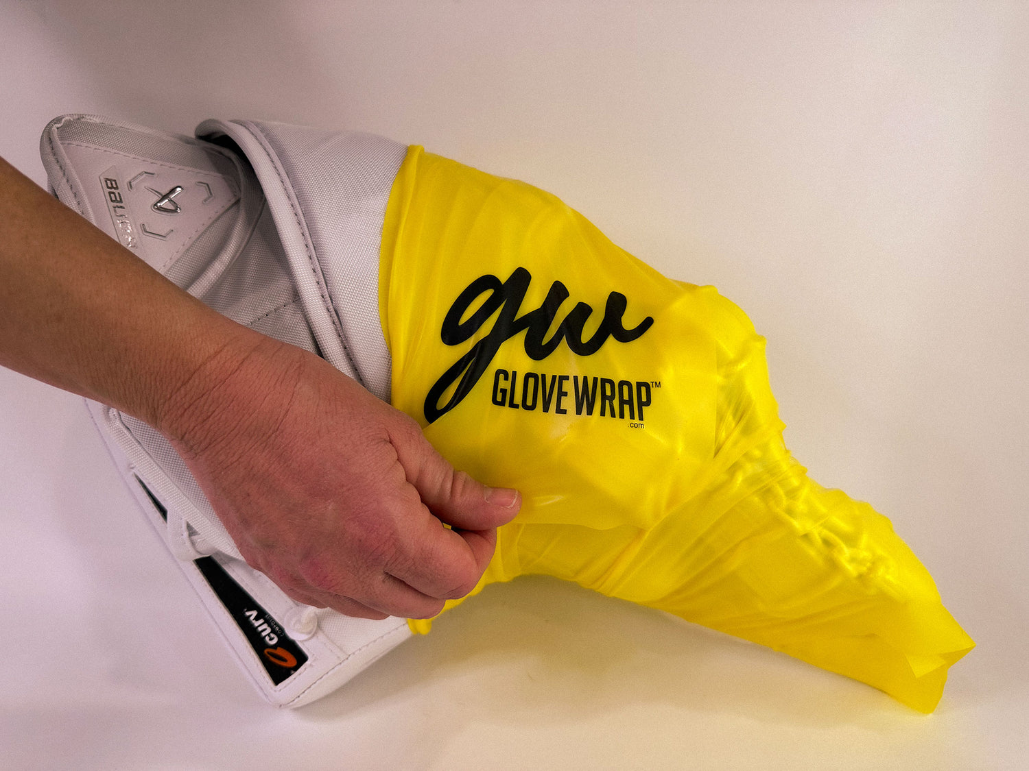 Grab your hockey goalie glove and place a ball inside the pocket. Begin wrapping your Glove Wrap™ around the glove while holding it closed.
